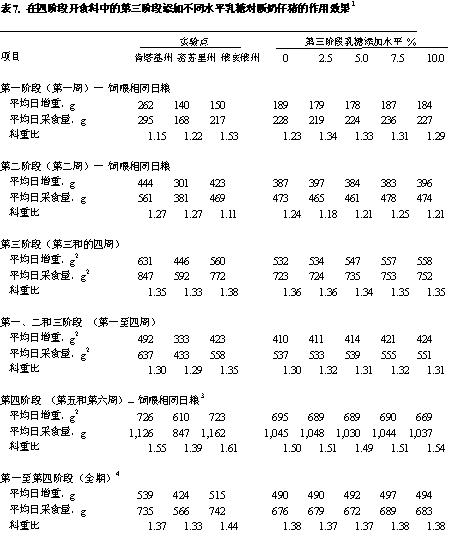 為了測定在第3階段對乳糖添加所得到的效果在后來飼喂不含有乳糖的同一種日糧時是否可以繼續(xù)維持下去,他們將飼喂乳糖組的豬生長速度和對照組豬的進行比較。在試驗期第3階段,采食添加7.5%乳糖的豬每頭獲得350